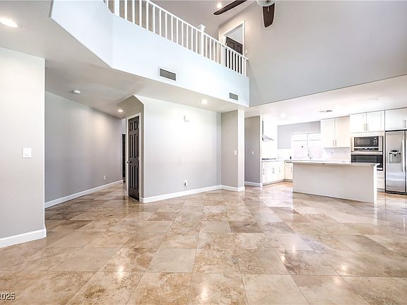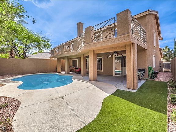 Updated home with pool and huge balcony located in the heart of Summerlin! The bright kitchen features a large walk-in pantry, white cabinets, modern quartz counters, stainless steel appliances, full tile oven wall and an island with seating, open to a family room with multiple windows and a 2-story vaulted ceiling. A downstairs bedroom and full bath offer flexibility for guests or a home office. Upstairs includes a loft and a private primary suite with a separate tub, walk-in shower, and a sliding glass door to a balcony that spans the length of the home and overlooks the backyard—complete with sparkling pool, extended decking, and a covered patio. LOTS of upgrades including designer tile in bathrooms, new carpet, and fresh paint make this MOVE-IN-READY gem a place you'll love to call home. In a prime location, near top-rated schools, parks, walking trails, dining, shopping, medical facilities, and quick access to Summerlin Parkway. Schedule Your Showing Today!