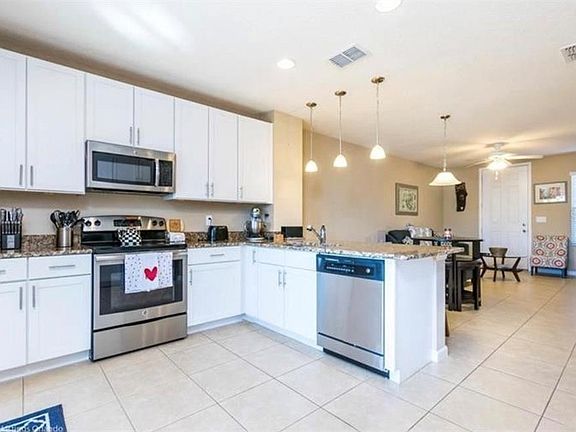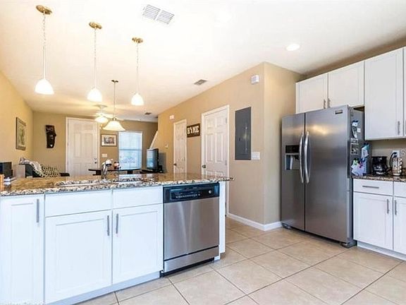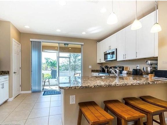 This home boasts the following amenities: CERAMIC TILE Floors throughout the first floor, GRANITE Kitchen countertops, Structured WIRING for HIGH SPEED INTERNET, Contemporary Style INTERIOR TRIM, Large Walk in Master Showers, UPGRADED APPLIANCES, LIGHTING PACKAGE, LANDSCAPE PACKAGE, AUTOMATIC IRRIGATION SYSTEM, 14 SEER ENERGY EFFICIENT HEAT PUMP, R30 CEILING & R11 EXTERIOR FRAME WALLS INSULTATIONS, WATER SAVER, and WALK IN CLOSETS. This floor plan features 2 bedrooms that each have their own bathroom ensuites with a half bath downstairs. The Townhome is located in the Legacy Park master planned community. Located west of Orlando in the Four Corners area, only a short drive from the Theme Parks, the Premium Outlet Malls, local shopping at the Posner Park shopping center and the International Drive attractions. For golfers, there are a number of nearby world-class golf courses including the Greg Norman designed National Golf Course at Champions Gate. The community features a Cabana with Pool/Spa.