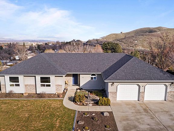 MLS# 275956 Seller is open to Seller Financing at a 5% interest rate. Please contact Listing Agent for more details. Check out this charming home nestled into the tranquil hillside along historic Prosser’s southern boundary. Featuring panoramic views, there’s a unique serenity that flows through the home’s spacious floorplan. This one-of-a-kind, custom-built residence boasts breathtaking views of the majestic Horse Heaven Hills to the south and to the horizon above the sweeping valley to the east and north. Imagine unwinding in your family room, dining room, living room, or master suite, each offering a unique perspective of the stunning scenery. The open living room greets you with soaring, vaulted ceilings and expansive picture windows that invite the warm sunshine and natural light to flood the space. For those cooler autumn and winter evenings, the family room offers a cozy retreat with its efficient pellet stove, creating the perfect atmosphere for relaxation and comfort. The heart of the home, the kitchen with BRAND-NEW stainless-steel appliances, seamlessly connects to the dining area, creating an inviting space for gatherings. Both areas are adorned with nice tile and Linne wood flooring, adding a touch of elegance to your daily living. The master suite is a haven of tranquility, featuring an ensuite bathroom, a spacious walk-in closet, and private outdoor access, ideal for a future hot tub or deck installation. Two additional bedrooms offer plenty of space for larger furniture and include custom-built window seats with hidden storage, perfect for a cozy reading nook or extra storage. Car enthusiasts will appreciate the oversized two-car garage, designed to accommodate large vehicles with ease. A bonus 7X17 foot storage space complements one parking bay, equipped with shelving and a track system for tool organization, perfect for a workshop or craft space. This home is more than just a place to live—it's a sanctuary where every detail contributes to a lifestyle of comfort, convenience, and beauty, all in the heart of Washington wine country. Don't miss the opportunity to make it yours, call your favorite Realtor for a private showing today!