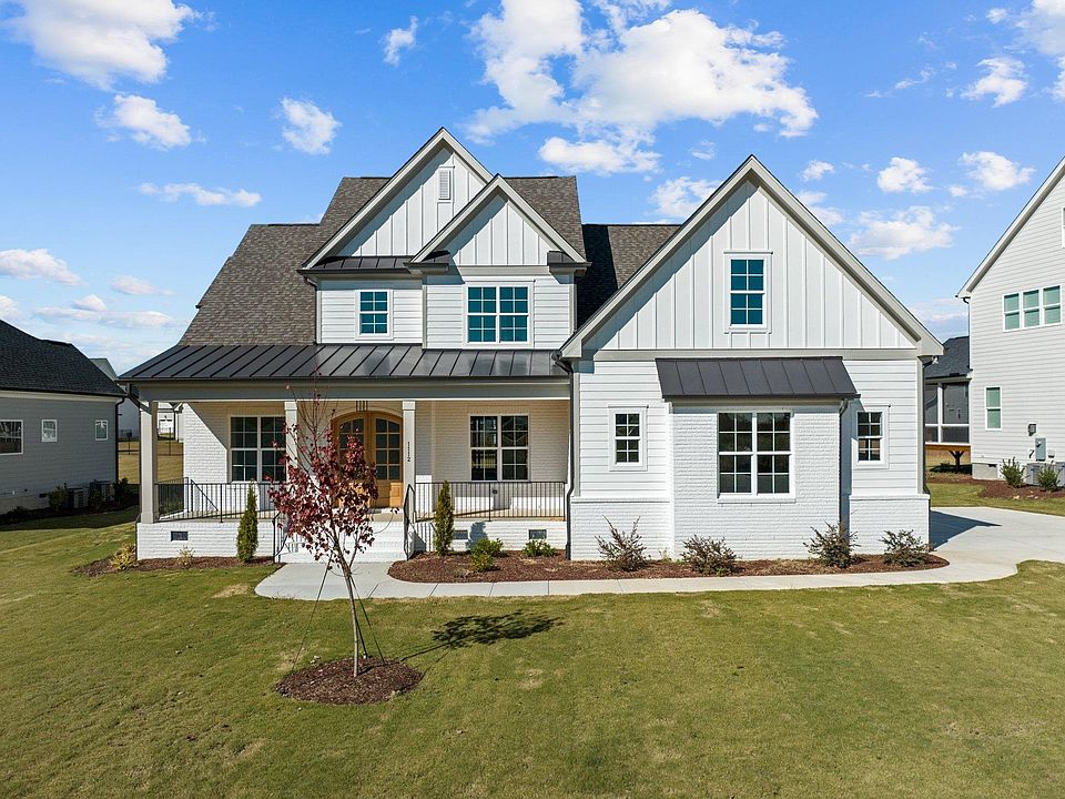 MOVE IN READY w/10,000 USE AS YOU CHOOSE BUILDER CONTRIBUTION! POOL COMMUNITY! 1st Floor Owner Suite & Guest Room! Hardwood Floors Throughout Main Living Areas! Gourmet Kitchen: Quartz Countertops, Island, Custom Cabinets w/Soft close drawers and roll out shelves, SS Appliances- Gas Range, Wall Oven, Wall Microwave, Dishwasher, Walk-In Pantry, Butler's Pantry! Family Rm: Gas Log Fireplace with Stack Stone Surround and Custom Mantle! Master Bedroom w/ Trey Ceiling! Master Bath: Marble Countertops w/Dual Vanity, Walk-In Tile Surround Shower, Free Standing Tub, Large WIC! Recreation Room with Built-In Wet Bar! Large Covered Front Porch! Screened Rear Porch & Patio! Large Walk-In Storage Area!