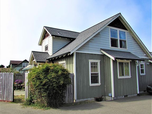 TWO HOMES on ONE LOT! Thoughtfully designed 4 bedroom home with two bedrooms & a full bathroom upstairs, plus two bedrooms & a full bathroom downstairs. Spacious living area, with good natural light. Quality touches throughout. Hydronic radiant heat. On demand water heater. Inside laundry room. Detached single car garage. Second unit is a one bed, one bath home with open dining, kitchen & living area. Single car garage with laundry hookups. Both units have fenced back yards. Close to town and just minutes to the beach!