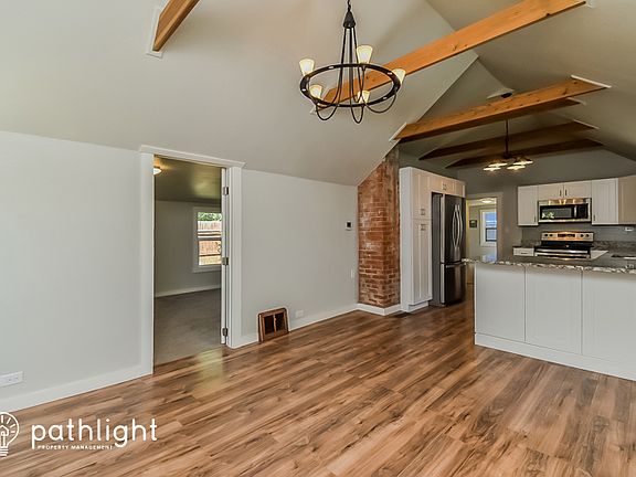 Application fee is $20 per household for a limited time. Please note that this property requires a 2-year lease. Enjoy the security of knowing that your rent will not increase during the 2-year term! Ranch style home featuring 3 bedrooms and 1 bathroom with updated LVP flooring and carpet throughout. Main floor features an open living area with high vaulted ceilings with exposed beams and a kitchen with plenty of cabinetry. Main level features all three bedrooms and a full bathroom. Partial basement features additional storage space and a laundry area. Fenced backyard. Close to shopping, schools, restaurants and freeways. Professionally managed by Pathlight Property Management, the exclusive property manager for Home Partners of America, offering excellent customer service, 24/7 emergency maintenance service, online application and payments, and pet-friendly options. HOA occupancy restrictions may apply. The listing agent offers competitive rental co-broke commissions depending on the standard in the metropolitan area. Once notified of approval you will be required to submit a security deposit equal to one month's rent within 48 business hours to secure the home. Please reach out to the agent to view the home before applying or use our self-touring option if available. Experience modern living with this technologically advanced smart home, featuring intuitive automation, energy efficiency, and enhanced security, all seamlessly integrated for your convenience and peace of mind. To make your move-in smooth, trash, sewer, and water services are maintained in the owner's name and are available at the time of move-in. A utility service charge will be charged monthly, along with a one-time fee; all other utilities, such as electricity and gas, need to be maintained in the resident's name. To better serve our residents, Pathlight is pet-friendly with no breed restrictions. The lease agreement outlines applicable pet fees. In most states, there is a one-time $300 non-refundable pet deposit and $30 monthly pet rent. Service and assistance animals are exempt from any restrictions or pet fees with proper documentation. If your home has a pool, there is a $100 monthly pool fee. To ensure the best care for your HVAC system and, in turn, the air quality in your home, a monthly $15 fee for bi-monthly filter service applies. Smart home technology is $24.95 monthly. Broker participation welcome, so please contact your leasing agent for more information. For additional information on our application process and lease fees, please visit our online help center. Advertised rental prices and promotions are subject to change at any time. The information contained herein has been obtained through sources deemed reliable but cannot be guaranteed as to its accuracy. Any information of special interest should be verified with Pathlight Property Management. **ALERT: If you see an ad for this home on Craigslist or Facebook Marketplace, please notify the listing agent. We do not advertise any of our homes on Craigslist or Facebook Marketplace and it is likely fraud.**