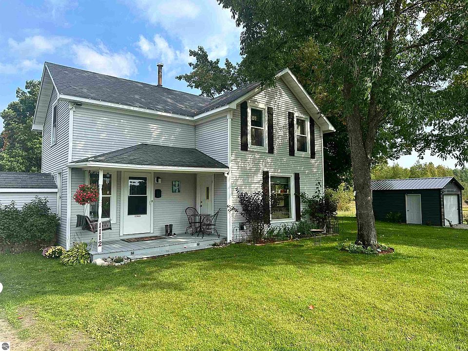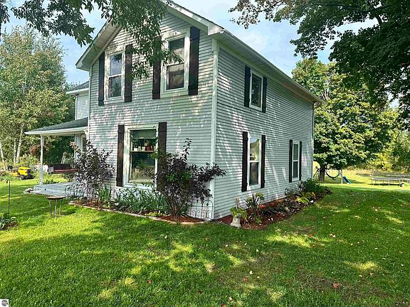 BACK ON THE MARKET (no fault of the home). Discover the perfect blend of modern updates and cozy comfort in this two-story farmhouse on a one-acre parcel in beautiful Cadillac West! Boasting a range of recent renovations and well-thought-out features, this home hits the mark for those seeking life in a peaceful country setting. Highlights include a recently remodeled, spacious eat-in kitchen and a center island with seating. The kitchen also features new modern fixtures and appliances, ample cabinet space, a charming brick accent wall, and has a great layout for cooking and entertaining. Enjoy farmhouse ambiance throughout the home, including a comfortable living room, featuring the warmth of a pellet stove, which also serves as a supplemental heating source. The main floor features a spacious bedroom that is currently being used as a home office. First floor bathroom has been tastefully remodeled, reflecting contemporary design and functionality. The upstairs offers two more generously sized bedrooms and a second bathroom that conveniently houses laundry facilities, adding convenience to your daily routine. An additional storage room provides practical space to keep your belongings organized and out of sight. Embrace the outdoors from your covered front porch, where you can unwind and relax in the tranquil surroundings. This property also features an irrigated yard with a fenced 20'x30' irrigated garden, and a charming gazebo that's perfect for back yard gatherings. A patio provides an additional space for outside entertaining. Newly added, large steel garage (12'x20') offers secure parking and storage. Recent updates include new flooring throughout the home, custom blinds, fresh paint, new shutters and upgraded electrical components for peace of mind. Situated on a blacktop road, close to snowmobile trails, Caberfae Golf and Ski Resort, and state land makes this property an ideal choice for outdoor enthusiasts! One-year home warranty is included.