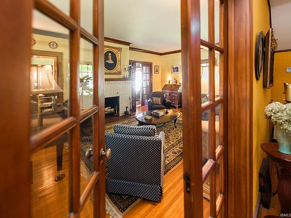 Welcome to Linden House, located in the desirable Elm Heights. This historic home was built by architect Alfred Grindle in 1927. A two-story treasure over a large, finished basement. This home boasts three large bedrooms on the upper level, two full bathrooms and one half bath. You will also find a den with wood burning fireplace, an office/library, formal dining room, and a large room for entertaining guests with built-in bar, vaulted ceilings, sky lights, and more. Almost 3000 sqft of well-maintained living space awaits you and just steps from Bloomington's beautiful IU campus. Walking through the front door you will be greeted by a breath-taking staircase, oak hardwood flooring, Gum woodwork and moldings throughout. Parking will be no problem, a clean two car detached garage with breeze way accessed from alley way is conveniently located behind this home. A large yard with a privacy fence, a shaded brick patio and flowering fruit trees on the west side. This home gets its name from the large linden trees that greet you in the front of the property. Don't miss this rare opportunity as homes like this do not come along often in this neighborhood. There is also a LONG list of upgrades done in the last five years with documentation attached to the listing. New AC 2024, new roof in 2019 with transferable warranty from RCV, basement waterproofing in 2019, and more! Seller is also offering a $3000.00 credit to the buyer(s) for repairs needed on the small back deck area.