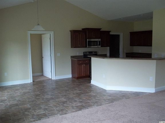 Popular Hickory 70, with open floor plan, split bedrooms, large relaxing front porch. Foyer has hardwood flooring, dining room has tray ceiling. Spacious kitchen has wrap around breakfast counter, breakfast nook, lots of counter top space and solid wood cabinets with crown molding and knobs, stainless steel appliances. Private 12' x 14' Master suite with vaulted ceiling, ceiling fan w/light, huge L shaped walk-in closet, two sinks, raised height vanity, garden tub with obscure privacy window to let light in, plus a separate walk-in shower. Rear screened porch and concrete patio. Smooth ceilings, 30 year roof shingles, cottage style doors, gutters, sodded yard, fully finished 21' x 24' garage with automatic door opener, pull down stairs to attic storage. Gated community, pool and clubhouse. Close to North Myrtle Beach, shopping, dining, etc. Photos and video are for illustrative purposes only and may be of similar home built elsewhere. Square footage is approximate and not guaranteed. Buyer is responsible for verification.