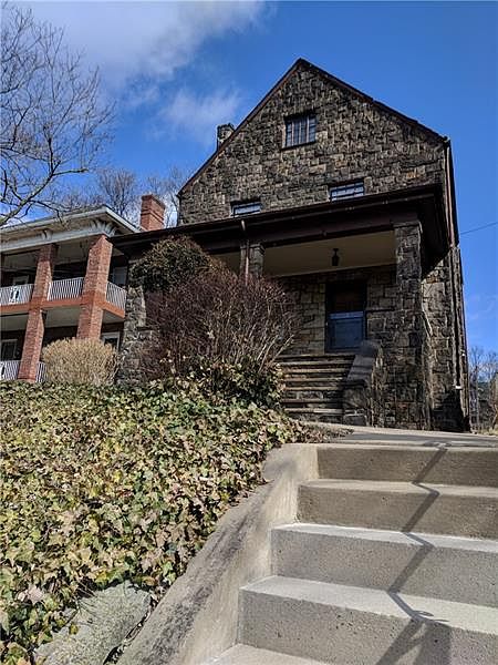 Yes, this is a stone home, close to the park, in Highland Park. Spacious, with 4 bedrooms plus a "storage room" on 3rd that can easily be made into a 5th bedroom if you need it. Original stained glass, generous room sizes, and a breakfast nook, are some of the details to appreciate in this home. There is a large master bedroom spanning the width of the second floor. It has a nice closet and private bath. A hall bath and 2 more bedrooms on the 2nd floor are rounded out with a groovy 1970's bedroom up on 3 with a bath, and the very large storage room. Basement is unfinished. There is a 2 car garage able to be accessed by a common driveway off of Hampton, behind the homes. The rain won't get you wet from the garage to kitchen, as there is a covered breezeway! Kitchen is in original condition. Your dreams can come to fruition with this blank slate of a home. Design it the way you have always wanted. This owner stayed 63 years. Now it is your turn!