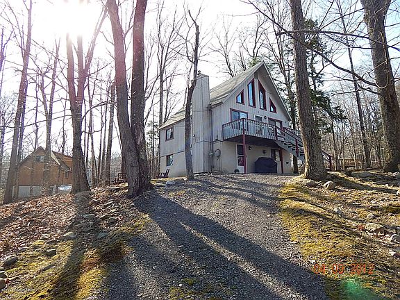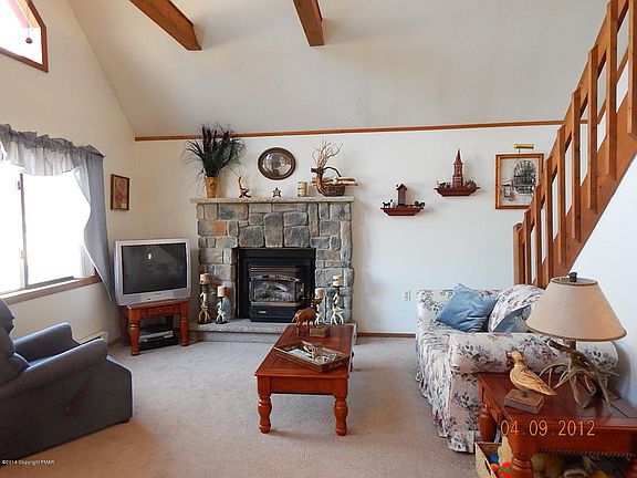 ACROSS FROM GOLF COURSE! Enjoy a day on the course, then jump in the pool. This Charming Raised Chalet features Great Room so enjoy the open floor plan. Stone fireplace has economical propane insert to enjoy the glow & warmth. Large Loft has skylights. Lots of glass let the sun light filter into the home. Don't miss the Large Family room for more place to spread out & have fun. The community is surrounded by Lackawanna State Forest. A great place to walk by streams and enjoy mother nature. This home has recent renovations and is priced to sell! See it before its too late.