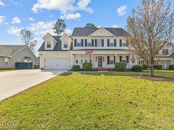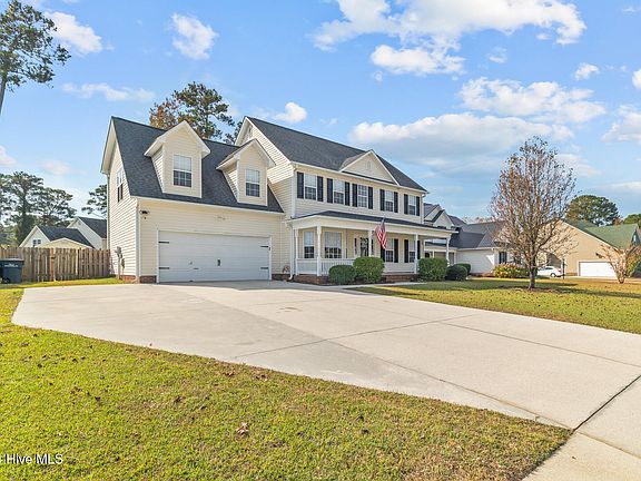 Welcome to 1112 Huff Dr!! This beautifully maintained 4-bedroom 2.5 bathroom home sits on 0.36 Acres in the desirable Country Club area! Minutes to Camp LeJeune and Minutes to Shopping and Restaurants! Greeting you in is a Large Front Porch made for relaxing on your rocking chairs and enjoying the Carolina Sunsets! Upon entering the expansive foyer your study/flex room is to the left and boasts tons of natural light thanks to the Gorgeous Bay Window! The Living area provides an open concept to your kitchen and offers a cozy fireplace for those chilly winter nights. The Kitchen is equipped with White Cabinetry, Pantry, Stainless Steel Appliances to include a Double, and Kitchen Island with Bar Seating! Downstairs also offers a Powder Room and an Oversized Laundry Room/Mud Room with Tons of Storage!!! The Master Suite offers a Beautiful Trey Ceiling with Recessed Lighting, and Large Closet. Upstairs also offers 3 additional bedrooms, a guest bathroom and Plenty of Storage Closets. The Bedroom over the garage is Massive with Enough Room for a Living Area and features Multiple Closets. The Backyard has something for Everyone with an Paver Patio, Shed, Playground and is Fenced Lined with Mature Trees!! So Much Love and Detail put into this Home!!