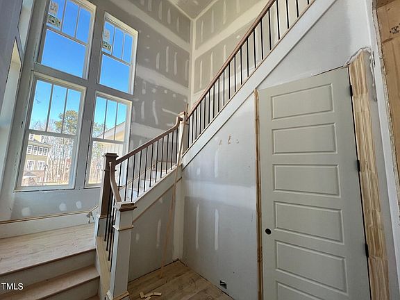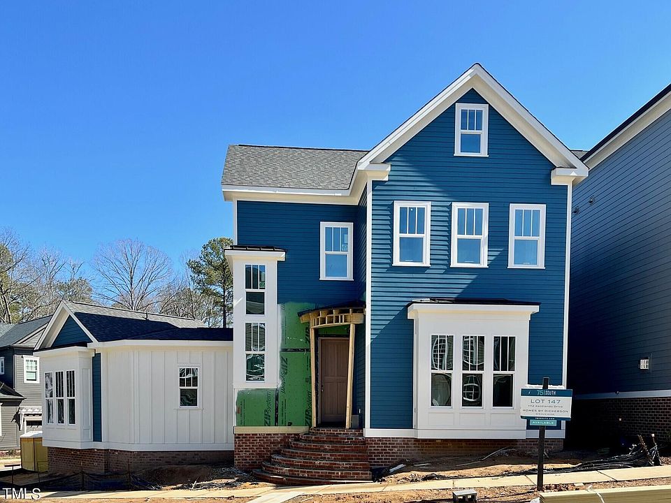 Discover the Juniper, a custom-designed plan by the local builder Homes By Dickerson, situated in the desirable 751 South community. This stunning home is located on a corner lot and features an impressive two-story entry foyer. 10' ceilings welcome you on the rest of the first floor, creating an open and airy feel throughout. The open concept kitchen, living, and dining areas provide the perfect space for entertaining and everyday living. A separate sitting room leads to the first-floor primary suite. For added convenience, there are laundry locations on both the first and second floor. The second floor boasts three additional guest bedrooms and two bathrooms. This high-performance home is complete with site-finished hardwoods throughout the main level, quartz countertops and custom trim details throughout. 751 South community is ideally located, offering easy access to Duke University, Southpoint, RDU Airport, and Research Triangle Park (RTP).