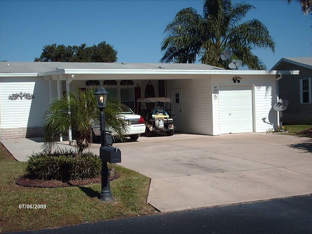 Calling all golf enthusiast! Scroll through the photos of this amazing golf course view home. This home is located in the stunning Four Lakes Golf Club 55+ Community. A luxurious community with a wonderful array of amenities such as 18 hole regulation length golf course, driving net and practice green, 20,000 square foot clubhouse, restaurant, Olympic size heated swimming pool, tennis courts, exercise room with sauna, private streets with 24 hour gated security, boating, fishing, sailing and skiing from the communities private dock just to name a few. Monthly lot rent for this home is $806.00 each month. This home has everything. From the sunset views from the lanai. The oversized driveway. To the ceramic tile running through the home. New roof in 2018, new HVAC system installed in 2020. Split floor plan with carpet in the bedrooms. Master suite, Beautiful walk-in shower. Spacious guest bedroom. Lovely kitchen with plenty of cabinets, updated appliances, large pantry for all your storage needs. This home is a must see to appreciate the elegance this home and community present. Call Today!