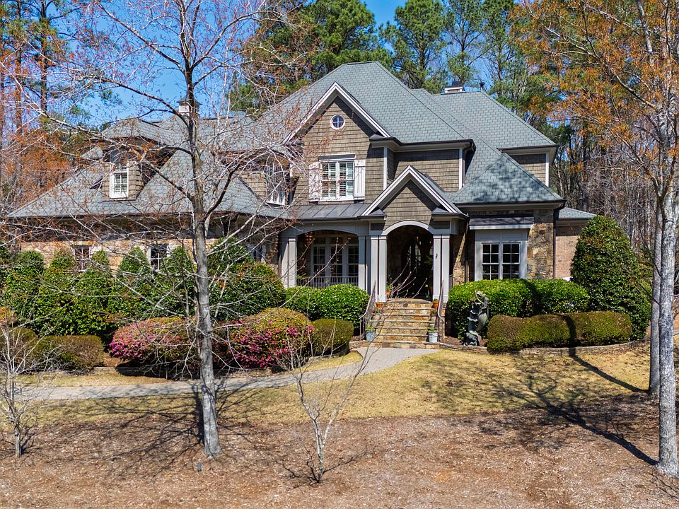 Experience luxurious living in a custom-designed Sundance residence, now available in one of the Triangle's foremost country club communities. This stunning property, nestled on a spacious private lot in Hasentree, welcomes you with its impressive stone porch. As you step into the grand foyer, you are met with soaring ceilings alongside exquisite reclaimed walnut hardwood floors. The open-concept layout seamlessly connects the gourmet kitchen, equipped with high-end appliances, to the breathtaking great room. A uniquely designed dining area, a cozy breakfast nook, and a substantial island provide ample space for family gatherings. Two bedrooms conveniently located on the main level are ideal for hosting in-laws, and a main-level laundry facilitates comfortable aging in place. The primary suite is magnificent, featuring a row of large windows, tray ceiling, a luxurious ensuite bathroom, and an expansive custom closet. A door from the primary room leads out to a stunning patio that includes a fire pit, grill, and a carefully maintained hot tub. Additionally, a screened porch enhances the indoor-outdoor flow, allowing you to enjoy the vibrant flowers and greenery of the large fenced yard with an irrigation system. On the second floor, you'll find three additional bedrooms and a spacious bonus area perfect for games and exercise. The third level presents even more opportunities for entertainment, with space designated for movies and additional fun activities. Plus, there's a three-car garage. This home boasts countless additional features. Come and discover for yourself why this Hasentree residence is not only uniquely crafted but also meticulously maintained and thoughtfully updated.