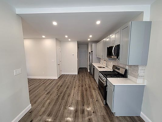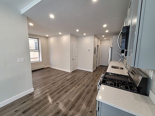Back on the Market! COMPLETELY BRAND NEW two bedroom apartment. This first floor rental apartment has been renovated and updated from ceiling to floor. Windows throughout provide natural light in every room. Unit boasts laminated flooring throughout, quartz countertops, stainless steel appliances (including over-the-range microwave and dishwasher), recessed lighting throughout, informal dining area, beautiful bathroom. The building itself is well maintained and has security cameras. Tenant is in control of own heat, pays own gas and electrical. No pets or smoking permitted. Location is near all shops and public transportation. Move-in ready. Smoking allowed:No