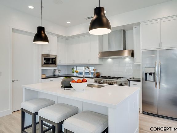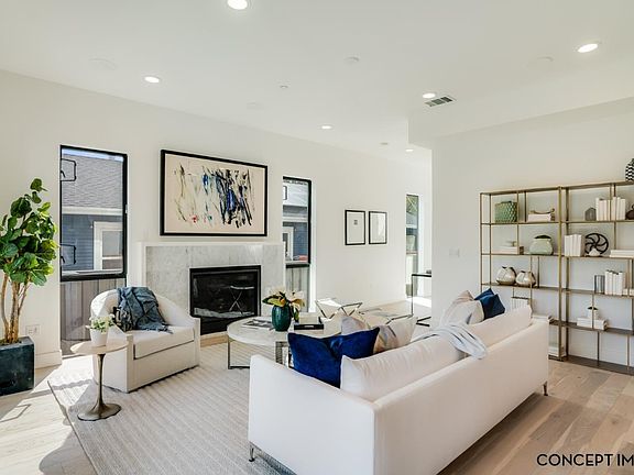 Located in Willow Glen, the exterior of this four bedroom, three bath home makes a statement with a striking modern exterior composed of clean lines, sleek windows, smooth stucco and accents of black siding. Just inside, you’ll find a first floor bedroom with full bath, perfect for overnight guests or as a private home office. The gourmet kitchen has stainless steel appliances and an island with bar seating, walk in pantry and eat in dining. It overlooks the great room, which has a cozy fireplace and quad sliding doors to the back yard. Upstairs, discover a loft ideal for study time or game night, a convenient second floor laundry room with sink and storage, two secondary bedrooms and a shared bath with dual sink vanity. The grand suite is filled with natural light and complemented by a spa like bath boasting dual vanities, a freestanding soaking tub, walk in shower with slab seat and walk in closet.