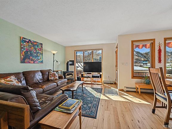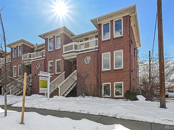 Charming 4 bedroom/3 bathroom Townhouse in the heart of Golden's historic district! This end-unit home offers spectacular mountain views AND is also just steps away from the heart of downtown Golden. The main floor features hickory hardwood flooring throughout, kitchen with granite countertops, cozy wood burning stove in the living room, and a convenient 1/2 bathroom. Upstairs boasts a primary bedroom with attached 3/4 bathroom and a cute, unique corner loft space with spectacular views. The garden level basement has three bedrooms and a full bathroom. Enjoy the convenience of a 1 car garage - this was a 2 car garage - one space has been converted into a workshop and the other space is open for parking. The home is heated with both a boiler and 2 mini splits, and the AC is off of the newer mini splits as well. Additionally, this residence comes with two parking passes, issued by the city for hassle-free parking. Breathtaking views of Lookout Mountain, North Table Mountain, and South Table Mountain right from your doorstep, your trex balconies, and your primary bedroom! Downtown Golden is just blocks away, where you can enjoy charming shops, dining options, and cultural attractions. Easy access to Clear Creek Trail system, perfect for walking, jogging, biking, and kayaking. Conveniently located near the renowned Colorado School of Mines. Don't miss your chance to own a slice of paradise in the heart of Golden's historic district! Schedule a showing today!