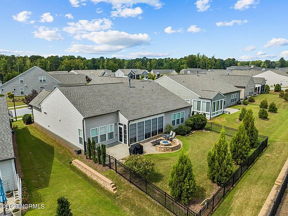 Here is an opportunity to own a stunning home with plenty of upgraded, custom entertainment features within the Del Webb at Traditions 55-Plus Community. This well maintained community offers tons of community engaging recreational opportunity, including a clubhouse with indoor pool and spa, plenty of sporting courts, walking tracks, a fitness center and much more! This home offers an open concept living space all on the same level with easy access to all areas, a large sunroom with AC, a spacious office directly off of the foyer, large master bathroom with upgraded features and two separate attic areas with flooring. Leading into the backyard you will find a fenced-in custom entertainment area, fully equipped with with a natural gas, stone firepit with seating extending from the main patio with a natural gas quick-connect grilling area, complete with a Weber grill. These are not the only upgraded features this home has to offer though! In the garage you will find three large custom built-in work benches with cabinets overhead, as well as a utility sink with hot water and another large built-in shelving unit. This garage offers plenty of functionality as well as room for parking two small vehicles. Move into this turn-key ready home, kick back, enjoy your own piece of paradise and enjoy everything this community has to offer. 10 year warranty from Pulte Homes is transferable.