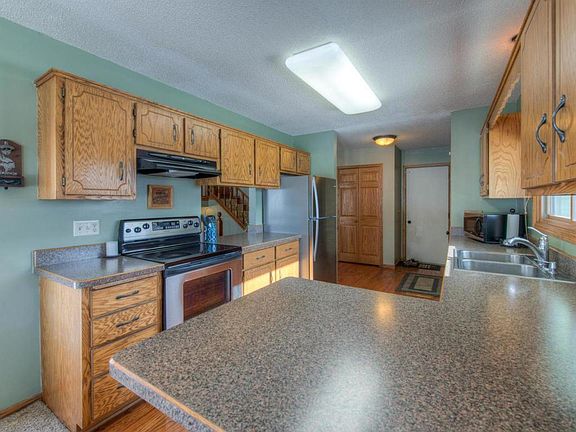 Spacious and immaculate 3 bedrooms, 2 bathrooms three-level split in prime Shakopee location. Home features updated bathrooms, open floor plan with vaulted ceilings in upper level living room, large eat-in kitchen that leads to deck with pergola, and huge master bedroom. Large, private backyard is an outdoor enthusiast's dream with beautiful landscaping, pond with waterfall, private deck, paver patio, sauna house, and a large storage shed.