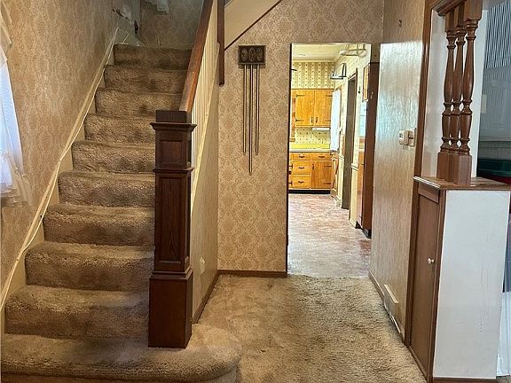 This large home in the heart of Natrona Heights is waiting for your personal touch. Entry way is inviting with open staircase. Spacious living room has nice bay window and brick fireplace. Formal dining room has access to back deck which also has a door to the original kitchen. Lots of cabinet spaces throughout the home. Second floor has 3 bedrooms with hardwood floors underneath carpet and large bathroom which needs remodeled. The third floor is finished with skylight and extra storage room. Basement is unfinished with full bathroom. Freshly painted and floor tiles have been removed. Great flat backyard with storage shed. Detached garage with new garage door and three off-street parking spots. Plaster walls and high ceilings are just a small part of the character in this home. Centrally located to Freeport Road, restaurants and shopping!