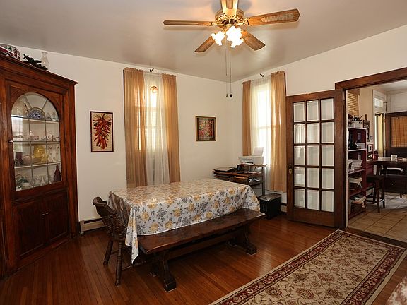 Lovely, well maintained 2 story home with the original woodwork, hardwood floors and the charm of long ago. Features include eat-in kitchen, dining room and 1/2 bath on first floor. Second floor sports built in storage, hardwood floors and a bedroom with a private porch. Need more room than that? Head up to the partially finished attic and have a 4th bedroom! Fenced yard and a detached garage with 2nd floor storage. Many newer windows throughout, new backsplash in kitchen.