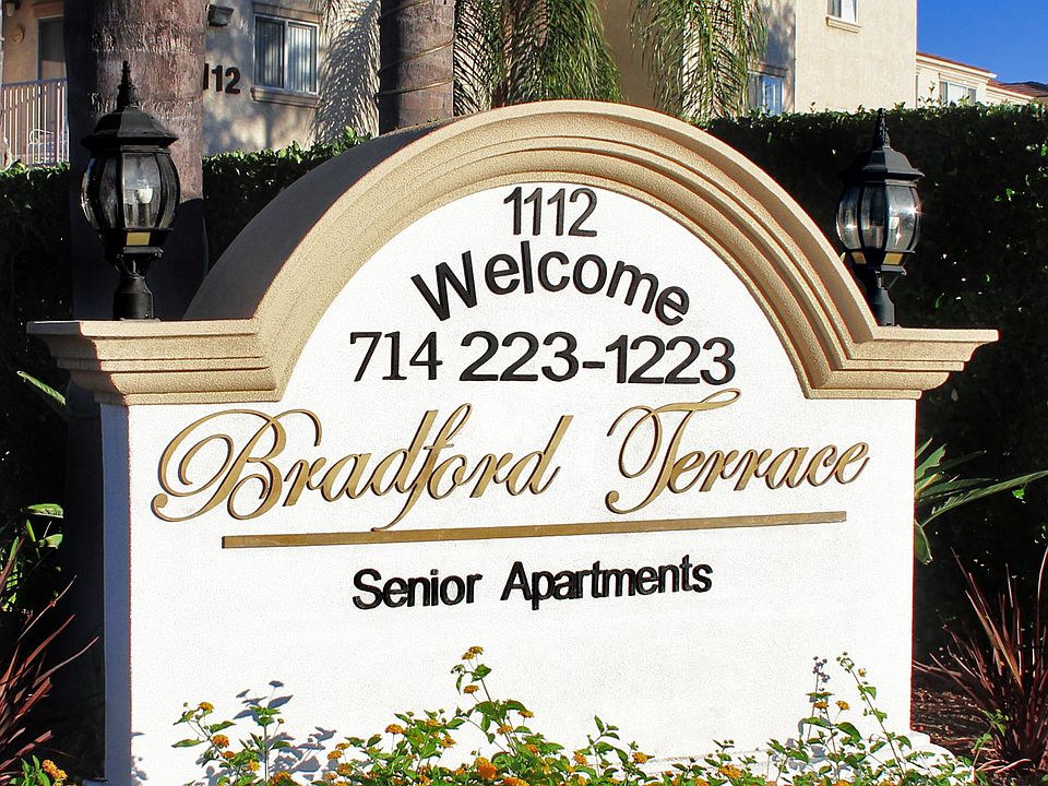 Welcome to Bradford Terrace 55+ Active Senior Apartments! Bradford Terrace is a Senior Apartment Community where seniors (55+) can enjoy scheduled activities and available amenities like a pool and Jacuzzi, an exercise facility, a community room with Wifi, billiards and ping pong table, a cozy library and a hair salon. Our one bedroom apartments are 650 square feet and our two bedrooms are 850 square feet. We are located near the 57 and 91 freeways, the Crossroads Shopping Center, restaurants, supermarkets, drug stores, banks, churches, and more. No Pets. No Smoking