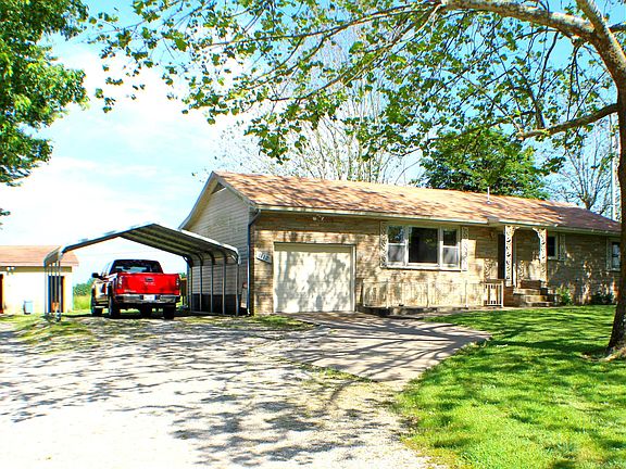 Features & features offered with this 3 bedroom, 2 bath house. Come and see all it has to offer! Over 1900 sq ft on one level, 3 living areas, large dining room. 24' x 24' Shop building, 9' x 16' shed, 2 car carport, 1 car garage. Custom built-ins and storage throughout the home. Stone and vinyl siding give this home a low maintenance exterior. It's just outside the city limits with country views and it is ready for your updates for you to call it home. You will love the features and settings, come and view it today!