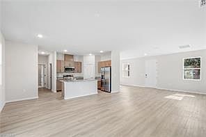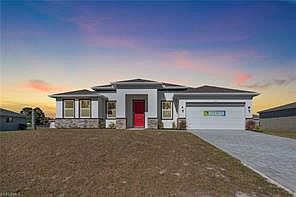 New Construction Energy Efficient Home in Cape Coral. Room for everyone with 1,663 SF Living Area. Just Finished and packed with over $20,000 in features including an upgraded appliance package, spray foam insulation, a brick paver driveway, a hybrid water heater, and pre-wired solar panel ready. Featuring 3 bedrooms, 2 bathrooms, and a 2-car garage. Open floorplan with vaulted 9'4" ceilings throughout and lots of windows for natural light. The kitchen is open to the main living areas. It features brand-new energy-efficient appliances, granite counters, a pantry, a center island with bar-top seating, and a dining area overlooking the backyard. Relax in the spacious living room overlooking the lanai and backyard out of the sliding glass doors. The master bedroom offers a nice retreat, and the master bathroom includes a walk-in closet, dual vanity with granite counters, and a walk-in shower. Neutral flooring and 3 baseboards throughout. The spare bedrooms are large and offer great space for families, guests, or a home office. The lanai is the perfect place to enjoy the Florida weather and BBQ and enjoy evenings and weekends in your private backyard paradise. Enjoy the upgrades and savings every month from this Department of Energy Zero Energy Ready Home with insulation, LED lighting, 50 Gal Hybrid Heater, 16 Seer variable speed A/C, Wi-Fi thermostat, Low-E vinyl dual pane windows, and Energy Star Appliances. For an additional cost, the home can be delivered with Solar Panels you own no separate loan for no electric bill or significant savings. Not your typical Cape Coral Home this includes several upgrades, savings, and smart features you will not find with other houses. Located near the future 7 Islands may include restaurants, shopping, marinas, a park, green space, and possibly even a beach area! BOATERS are located near several public boat launches/ramps and Matlacha for Gulf Access, open water, world- famous fishing, beaches, and barrier islands. GOLFERS - Very close to Palmetto Pines Country Club and Coral Oaks. Close to shopping, dining, events, Starbucks, Target, Publix, and the area's top-rated restaurants.