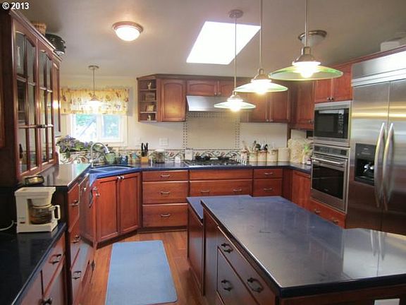 One of a kind single level triple wide, 3 bdrm, 2.1 bath, mfghome with nearly 2000 sq. ft. of living space, located on its own .44 acre lot. As well, this home offers a detached oversized garage, with a 470 sq. ft. loft/office space above. The upgraded gourmet kitchen offers the best of cooking facilities with an oversized built in refrigerator. Huge covered deck adjacent to water feature, private location close to town, schools etc.
