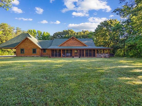 Enjoy serene country living on this 4 bedroom + Bonus room / 2 bath log home nestled on 8.53 acres. Bring your livestock! Featuring: 3 car carport, picturesque land is adorned w/ a stocked pond & charming gazebo, custom bar in bonus room, Concrete pad w/ RV hookup & trailer parking. Enjoy your Summertime BBQ's on the screened porch with an outdoor kitchen! Large 2 story barn, chicken coop & storage shed & a 12 person storm shelter. What a STEAL! Unbelievable price for the amenities! Roof 7 yrs.