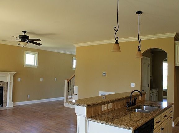 Recentlycompleted custom built home in Fuquay Varina. Stunning exterior stone accents and arched entry with a stained mahogany front door. Other exterior finishes include fiber cementsiding, miratech trim boards and gutters. Site finished red oak hardwoodfloors through out the entry, dining room, living room, and kitchen. Open kitchen features stainless steel appliances, antique white and glazed cabinetry, tile backsplash, granite countertops with rasied bartop. First floor master with trey ceiling and custom finished walk in closet. Glamour bath has split vanities, soaker bathtub and tiled shower. Huge bonus room and large secondary bedrooms all have custom walk-inclosets. Additional finished flex area on the second floor could be usedas a study, play room or excerise room.