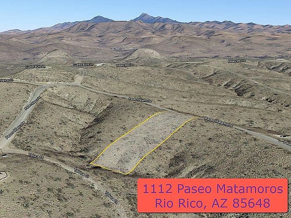 Amazing hilltop views with water and power at street Large 1.3 acre parcel East of I-19 in Rio Rico AZ Property Address: 1112 Paseo Matamoros, Rio Rico, AZ 85648 Latitude/Longitude: 31.459821,-110.926187 County: Santa Cruz Subdivision: Rio Rico Ranchettes Google Map - https://goo.gl/maps/bKkLPCQrxbUjHEfY6 Directions: From I-19 and Ruby Rd. Head east on E Ruby Rd toward E Frontage Rd/I-19 Frontage Rd, Turn right onto Pendleton Dr, Turn left onto Paseo, Turn left onto Camino Estrella Guebabi, Turn right onto Paseo Mascota, Turn right onto Paseo Matamoros, Property is on the right. PRICE: $10,000 Plus closing costs Owner will finance with reasonable down payment. Finance price will include account servicing fee and monthly tax payment. Credit card payments are charged an additional 3% Permitted uses: Site built homes only Property Description This property has great mountain views and awesome Sonoran Desert sunsets situated in this quiet rural setting. Located in the rolling hills East of Rio Rico with water and power at street, septic is required. This is a great chance to own your own piece of hilltop property (1.31 acre) in Rio Rico, Arizona. Surrounded by endless outdoor activities, whether it fishing, swimming and boating at Patagonia Lake State Park, playing golf at one the courses in the area, hiking and biking the miles of trails available or just relax and go sightseeing. Nearby Tubac AZ there is shopping, fine dining, museums, art galleries and entertainment for the whole family, Walmart Supercenter is 23 minutes away in Nogales AZ., Tucson is approx. 1 hour North with endless amenities available. Come take a look !!! Property Info Power: Yes - Available Sewer: Septic Required Water: Yes - Need to verify Gas: No Telephone: Need to verify Cable: Need to verify Access: Public Road - Paved HOA: No Survey: No CCR's: Yes Property Details Parcel Number: 117-01-279 Property Type: Residential Vacant Land Lot Size: 57,188 Sq. Ft. Acres: 1.31 AC Topography: Rolling Dimensions: 113x478x120x515 Shape: Rectangle Zoned: R2 FEMA Flood Hazard Zone: X FEMA Floodway: No Yearly Tax Amount: $131.48 Road Type: Paved Road Maintenance: County School District: District: Santa Cruz Valley United School District #35 Legal: Sub Rio Rico Ranchettes Unit No.12 Lot 124 Of Blk GIS Map - https://sccaz-gis.maps.arcgis.com/apps/webappviewer/index.html?id=6747735f7c9d46d0abfedaf8f0e79e35&marker=-110.92591533796663%2C31.46007330422612%2C%2C%2C%2C&markertemplate=%7B%22title%22%3A%22SILVERMAN%20JEROME%20M%20%26%20EVA%22%2C%22longitude%22%3A-110.92591533796663%2C%22latitude%22%3A31.46007330422612%2C%22isIncludeShareUrl%22%3Atrue%7D&level=19 Photos - https://photos.app.goo.gl/jTWKk8uCkW8CPBAD9 Santa Cruz County Community Development 520-375-7930 https://www.santacruzcountyaz.gov/159/Community-Development Santa Cruz County Zoning and Development Code - https://www.santacruzcountyaz.gov/DocumentCenter/View/8358/Santa-Cruz-County-Zoning-and-Development-Code Semi-Truck Parking requires M1 - Light Industrial or B2 General with a waiver. All properties are sold AS-IS. Buyer is to pay all closing costs and to do their own independent due diligence. One or more members of corporation is a licensed real estate agent in the State of Arizona
