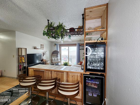 This affordable cozy two bedroom/1 full bath condo is in a desirable south Bismarck location. This condo is in a secured building and includes two assigned parking spaces with extra guest parking. This unit has updated lighting and flooring and a new built-in breakfast bar with two installed beverage coolers that stay with the condo. On the adjacent side of the breakfast bar is your living area with an electric fireplace and balcony! The shared laundry is steps away from the unit and has a small convenient storage closet, so there is no need to haul your laundry necessities to and from each time! These units can be rented out, so INVESTORS, be sure to take a tour!