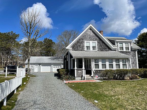 Lilacs, land & lore. Gracious 1916 Victorian with oversize 2-car garage with workshop is a marvelous example of turn-of-the-century Cape Cod architecture. Set on a nice rise well back from the road and surrounded by a carpet of green lawns for summer games, BBQs, and gardening, this striking residence echoes the past and is primed for the present. Original architectural details with Arts & Crafts touches include colored stained glass windows, high ceilings, burnished wood trim and gleaming fir and wood parquet floors. Held by the same family for more than 100 years, 1112 Queen Anne Road--freshly painted with numerous updates--is move-in ready! Walk-to-village location and close to Nantucket Sound and Pleasant Bay beaches, shopping, fine dining, conservation areas, and highway! (Note: property is scheduled for town sewer tie-in in 2022/23, offering potential for a pool.)