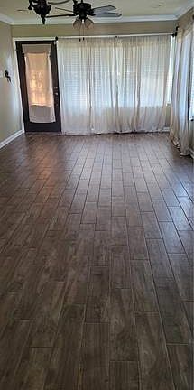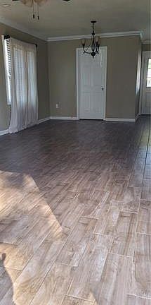 Adorable 3 bedroom, 1 Bath home with Wood Look Ceramic Tile & ceiling fans throughout, recess lighting, crown moulding, Granite Counters in Kitchen with Stainless Steel Appliances & Gas Range Oven. All appliances stay, refrigerator/washer & dryer(no warranty). Large backyard with shed. 1 small pet allowed w/pet fee,breed restrictions due to insurance. No smoking in the house. 1 year lease.