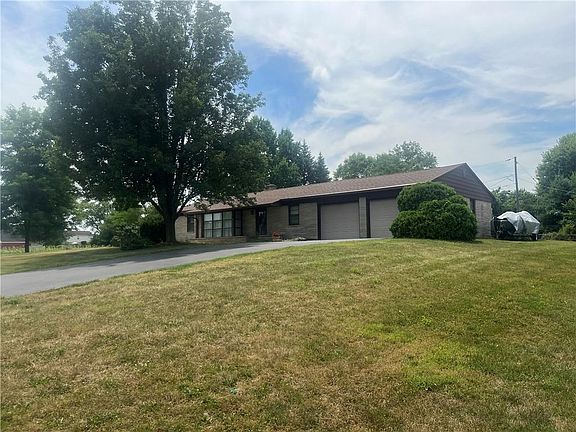 Lots of potential here!! Owners since 1955 have enjoyed this home !Bedford stone ranch on small hill boasts 3-4 bedrooms , full basement with high ceilings and over an acre lot with no HOA. Owners know hardwoods are in 3 bdrms. One room (den) is knotty cedar on walls and ceiling . Kit cabs are knotty cedar as well. Kit oven is not working. Roof is one layer Ca and furnace have been replaced but unsure of exact age Roof is one layer. Great country feel on property. Lot could have additional garage or pole barn Home could also be added onto. Sold as is.