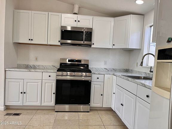 COMPLETELY REMODELED INSIDE 2025. Fresh paint, New cabinets in kitchen & baths. New stove & microwave. New countertops. NEW TILED SHOWERS & TOILETS & SINKS & FAUCETS. Couple of new windows! **NEW HVAC 2024 ** Refrigerator Washer Dryer are included. This home is MOVE-IN ready! The large lot 5914 SF is OWNED. No lot rental fee. 2 large storages on the property. Concrete RV parking & car parking on both sides of the house. GATED for security. Security door at the front door. 2 major city parks in walking distance, just a block away!