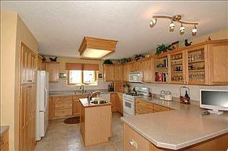 Beautiful, spacious, open floor plan. Quality custom walk-out ranch on Deer Run Golf Course. Smart updated decor. Panoramic view of course & trees. Maintenance-free exterior w/steel siding. 3car heated att garage, plus over-sized 4th garage w/rear access & driveway. Perfect for your boats, campers or workshop. Large tiled kit w/island & 2nd sink, turntables, pull outs, pantry & many extras. Large dining area plus brkfst bar eating; open to adjacent hearth room w/2 sided frplce. Ideal for casual entertaining. Grt room w/10ft ceiling, frplce & built-ins. 2nd bedroom or den, 1/2 bath on main level plus huge master suite w/sitting area, whirlpool bath, shower & large walk-in closet. Util room w/sink. Downstairs are 2 lrg bedrms w/lots of closets, 3/4 bath, fm room & lrg storage area or room to be finished. 9ft ceilings in basement. Lots of lndscpng, deck & patio. Extras include HRV air exchanger, central vac, surround sound for MBR, grt room & deck, security pre-wire, Marvin low-E windows.
