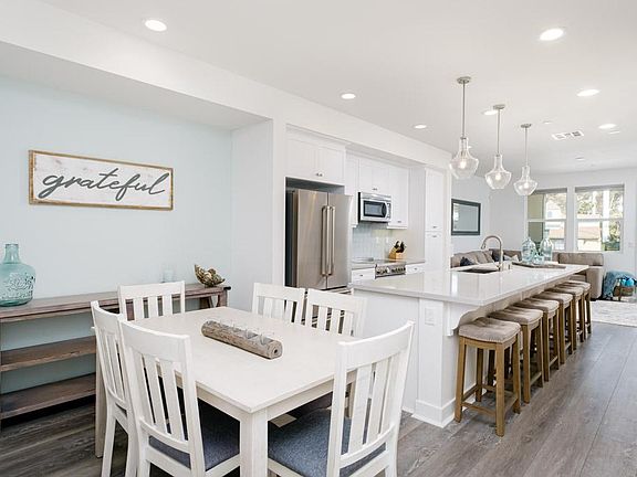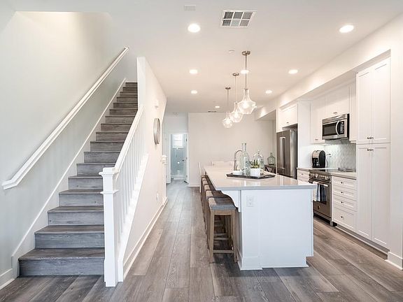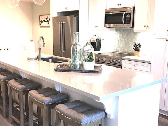 The townhome features a spacious layout with plenty of room for everyone to spread out. The top floor has two primary suites, each with its own private bathroom and walk-in closet. The main floor has a gourmet kitchen with top-of-the-line appliances, a dining area, family room, full bath and flex bedroom/den. There is also an additional bedroom/bathroom and two car garage on the ground floor.