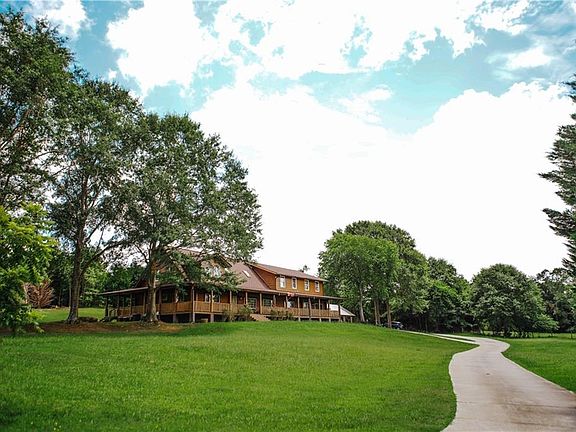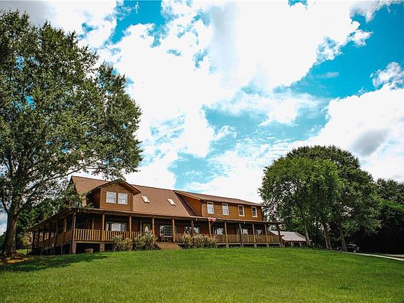 MAGNIFICENT one of a kind custom built log home situated on almost two acres is a MUST SEE! This 5 bedroom - 5 1/2 bath Swedish Cope Log Cabin has fabulous exposed interior walls that enhance the distinctive and sought after quality of a CUSTOM BUILT HOME! (*NOT a kit built home). HUGE wrap around porch WELCOMES you to enjoy the beautiful outdoors year round with almost 1700 covered square feet! A GRAND great room/living room entrance with vaulted ceilings captivates your attention for the PERFECT entertaining space! A second living room just off to the side features a corner stone fireplace. Home features TWO Master bedrooms complete with full baths. The Master on main has a handicap accessible shower and it's own personal access onto the wrap around front porch. The second story Master features a separate shower and a jetted tub. The ENORMOUS 'Galley Style' kitchen measuring almost 24 feet long features double ovens, a plethora of counter space and a walk in pantry. This beautiful log home is situated on almost 2 acres with an amazing fire pit in place on the side of property. The three car garage and 4 bay carport also includes a separate storage room for additional space. There is a neighborhood lake access spot with a pathway to sand and the lake within walking distance (no ramp). The home is conveniently located just 1.2 miles from the nearest boat ramp. VERY quiet subdivision with NO HOA FEES! USDA eligible! A NEW 30 year shingle roof was installed on the house one month ago along with new metal roofs on the carport and garage. Installed by Anderson's highest google rated roofing company. All workmanship warranties are transferable.