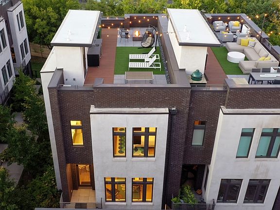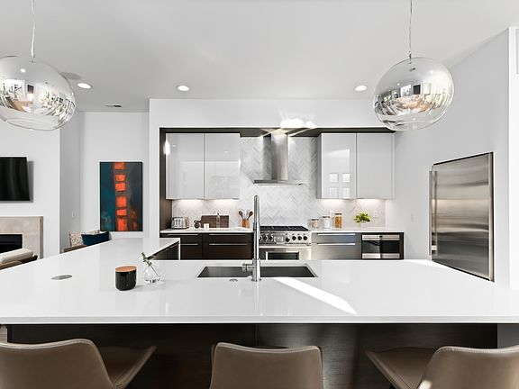 Enjoy skyline views on your rooftop deck w/ luxurious tile pavers, turf lounge area & sustainable outdoor decking (optional gas firepit & customizable kitchenette). Be enveloped by the opulence this bright modern home with full-overlay cabinets, waterfall marble countertops, eye-catching light fixtures, & elegant bathrooms. Crisp white walls punctuated by dark windows, contemporary fireplace & sleek wide-plank wood floors complete the experience. A full Fisher & Paykel kitchen suite await the discerning chef as well. Photos/Videos are of Model Unit, and represents the layout of 1120 with minor variations for finishes. 1120 has an additional half bath on the main living level that the model does not.