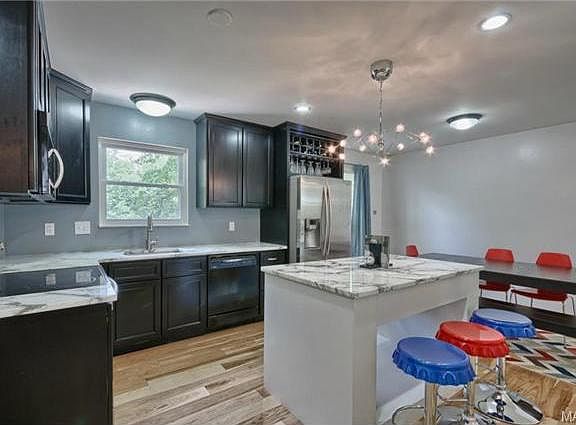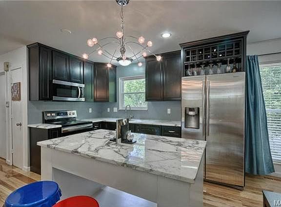 Main and upper level square footage is 1536. The basement offers an additional 479 square feet of finished living space! See interactive floor plan for birds eye view floor plan. Fantastic 2 story in Rockwood Schools features an updated kitchen with custom built 42" espresso maple cabinetry & exotic arabascato marble counters & island top. Unique 5x3 island features large hidden drawers. Gleaming hickory wood floors flow through the main level. Finished walk out basement here with newer carpeting and another full bathroom (stand up shower). High end lighting fixtures, stainless steel & black appliances, bathroom updates...the list goes on! Large deck, patio and level fenced back yard. Freshly painted and move in ready! Great location...can be accessed from 141/Bowles or Hwy 30/Summit. Easy access to Hwy 30/Hwy 141/I-270/I-44.