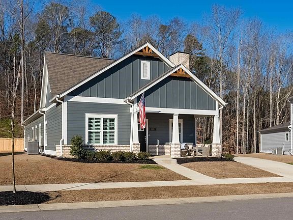 CHARMING and SPACIOUS only begins to describe this beautifully designed, single story, open concept home located in Leeds' newest sidewalk community of GRAND RIVER UNALI. You will instantly fall in LOVE with this 3 bedroom/2 bath cul-de-sac home, directly across the street from the community's AWESOME playground. FEATURES include: hardwoods throughout entire home, plantation shutters throughout, vaulted ceiling in great room with fireplace, spacious dining room, gorgeous kitchen with upgraded granite countertops, beautiful colors and tons of cabinet storage with quiet close feature & large laundry room with storage. Don't miss the private primary suite with garden tub, double vanity, upgraded tile shower with bench & extra large niche plus spacious closet. Enjoy the covered porch overlooking the wooded, newly fenced in backyard!! AND, conveniently located within 1 mile of I-20 for easy access, Bucee's, Barbar Motor Sports & Bass Pro Shop.