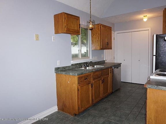 Ready to move in, 3 bedrooms, 2 full baths with fenced yard. This open floorplan kitchen, dining room and living room with cathedral ceiling. Two bedrooms on the main floor and full bath. The second floor has a large bedroom with a full bath. The basement would make a great rec room. Fenced in yard with a deck and railing for the barbecue. Many updates with new carpet in 2 bedrooms, new engineered wood flooring in living room and upstairs bedroom and new shutters. Call to schedule a visit today.
