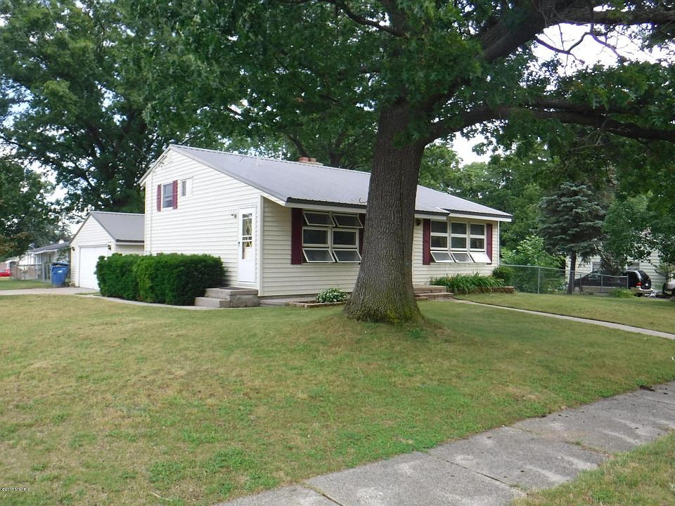 Nice location in West Greenville across from the school and park. 3 or 4 Bed , 2 full bath, nearly 2000 Sq Ft home on a double corner lot. Beautifully shaded and fenced-in back yard. Main floor with cathedral ceilings with kitchen and dining area with laminate wood floors and all appliances. Large living room with half stairs to upper level and 3 bedrooms, full updated bath with ceramic tile, 6 panel oak doors and hardwood floors throughout. You can also go down stairs from the living room to ahuge lower level family/rec room or possible 4th bedroom area with a gorgeous sandstone wood fireplace. Full bath and laundry/mechanical area are also on this level which leads to a 3 season porch/breezeway and the 2 stall attached garage.