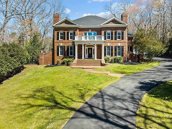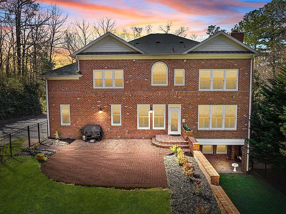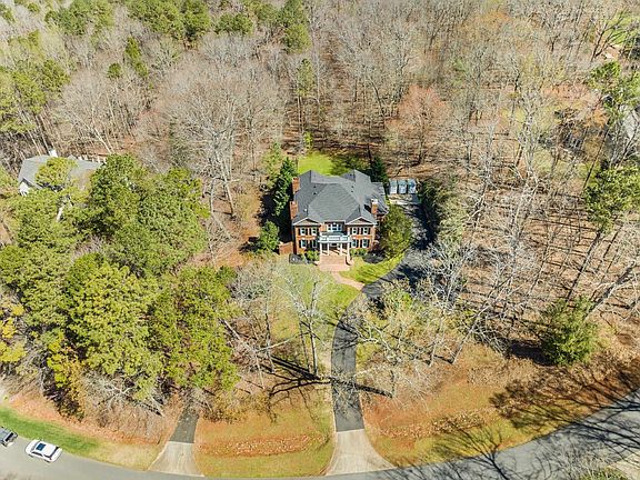 This executive all brick home sits on a beautiful, wooded landscape of over 2 acres of privacy in North Raleigh's exclusive Adams Mountain gated swim/tennis community! Greeted by hardwood floors & cathedral ceilings, first level features formal sitting room/office gleaming with natural light, separate dining room, 3 wood burning fireplaces & built-in bookshelves. Open living room & kitchen area is great for entertaining with access to large brick exterior patio that leads to a fenced flat backyard. Upstairs primary suite w/ sitting area & en-suite bathroom. 3 additional spacious bedrooms on the second level. Private driveway & exterior entrance to 1200 sqft living area downstairs. Full walk-out finished basement features second kitchen, laundry, living room & large bedroom w/ full bathroom. Perfect for multi-generational living or guest apartment suite! Conveniently located to highways, restaurants, & shopping. Less than 10 miles to RDU airport, short commute to RTP & downtown Raleigh. Nearby Falls Lake for boating adventures & more! No city taxes! New carpet & freshly painted throughout. Home Sweet Home!