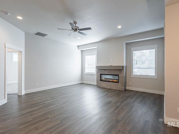 Presenting the Belle Fontaine by Ted Mason Signature Homes! This beautifully finished home is move-in ready and packed with quality features you'd expect from a Ted Mason build. From the welcoming front patio to the quartz countertops, custom cabinets, and spacious kitchen island, every detail feels thoughtful and functional. The open great room offers plenty of natural light and a cozy fireplace, while the spacious owner’s suite features a walk-in tiled shower, dual vanity, and generous closet. Located in the popular Dagger Falls community, you'll enjoy peaceful surroundings with easy access to trails, parks, and local amenities.