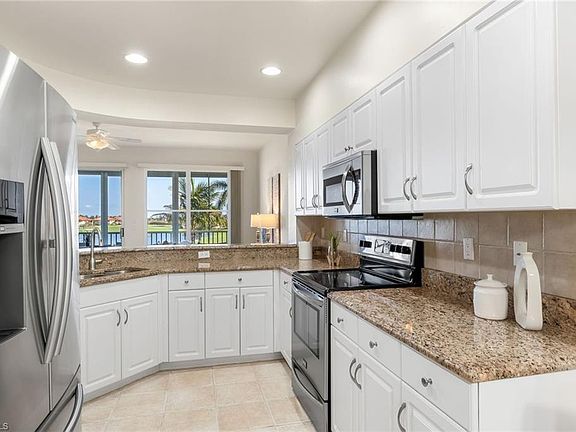 RECENT PRICE IMPROVEMENT!! WELCOME HOME TO PARADISE!! The amazing community of Gulf Harbour Yacht and Country Club offers something for everyone!! Everything you need is right outside your front door. Community amenities include NO-WAIT (optional) golf and social memberships, a full-service marina with available boat slips, a luxurious clubhouse with a resort-style pool, waterfront dining, and bar, spa facility/fitness center, a private beach, and tennis featuring Hydro Grid clay courts. This condo boasts breathtaking panoramic water and golf course views overlooking the 15th and 16th holes of the course. Interior features of this spectacular property include three bedrooms, two full baths, an eat-in kitchen with breakfast bar, a large dining area, and an open-concept living room area with stunning exterior views. Additional features include a mix of tile and wood floors, a primary bedroom with a sitting area, a walk-in closet, an en-suite bath, a kitchen with stylish white cabinets, beautiful granite counters, tasteful backsplash, and stainless steel appliances. A fully screened lanai with electric storm shutters, in-unit laundry, a separate outside storage closet, and an attached two-car garage under the building round out everything this fabulous property offers. This fantastic property is located within a few minutes of Ft Myers Beach, Sanibel/Captiva islands, downtown Ft Myers, and all of the amenities this SWFL area offers! Professionally Cleaned!