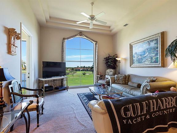 Best Priced Condo with Expansive Views and 2 Car Garage in Gulf Harbour Yacht & Country Club! This well maintained, top floor condo offers 12' ceilings, large cathedral window, beautiful views of Holes #15 & #16 and an open kitchen. The open kitchen and large Great Room offers a wonderful space to entertain and take in the wonderful golf course views. Your guest bedroom, bath and den are at the front of the unit allowing separation from the main living area. Its close proximity to the clubhouse and marina makes Bellavista's location very appealing to its residents. This unit comes with a deep, two car garage which is large enough to fit two cars and a golf cart. The short walk from the elevator to the garage is completely covered always keeping you out of the elements. Not only do you have a deep garage, but you have a storage unit directly across the breezeway from your front door. Gulf Harbour Yacht & Country Club offers Golf and Sports Memberships which are not required, but will enhance your Gulf Harbour experience. If you are a boater, the Gulf Harbour Marina offers 186 deep water slips for purchase or lease. Call today for your private showing!