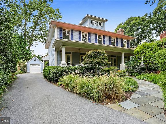 You must see this fabulous, cedar shake, Plantation-style Colonial situated on an oversized 14,000+ sq. ft. lot in highly sought-after, historic Garrett Park. This home features over 5,000 sq. ft. of living space over 3 finished levels with 5 bedrooms, 4.5 bathrooms, 3 fireplaces, and a 1-car garage. The elegant interior demonstrates tasteful finishes, crown molding, gleaming hardwood floors, soaring ceilings, walls of windows and doors, 3 100-year+ stained glass windows, and recessed lighting throughout. Designed for entertaining with open floor plan, the enchanting, extended, IPE-wood front porch leads to the entry that flows into the expansive living and dining areas surrounded by tall French doors, large windows with Plantation shutters overlooking park-like gardens with low voltage lighting. The large eat-in kitchen with Terra Cotta Tile flooring has a Viking range, warming drawer, 48 SubZero refrigerator, 2 dishwashers, wine refrigerator, large pantry, granite counters and large breakfast area. The Great Room boasts high ceilings, a wall of tall French doors with leaded-glass transoms, and a chiseled stone-surround fireplace with flanking built-ins. The grand staircase leads to a broad upper hallway providing access to 4 bedrooms and the upstairs laundry room. The Owners Suite includes a tray ceiling, recessed lighting, balcony overlooking beautiful rear yard, dual walk-in closets, and master bathroom with jet bath, separate his/her vanities, and a separate oversized shower. A 2nd large bedroom includes an en-suite bathroom and the other 2 bedrooms share a Jack & Jill bathroom. The finished lower level with Ceramic Tile flooring is not to be missed with high ceilings, expansive recreation room with wet bar and fireplace flanked by built-ins, full bath, large fitness/office room, 5th bedroom, storage room and walk-up entrance. The beautifully landscaped, fenced rear yard includes rare specimen plants, oversized flagstone patio and fishpond with waterfall. Freshly painted throughout, new carpeting installed and entertainment speaker system in many rooms (includes front & back porch). Conveniently located in the Walter Johnson High School district and close to Metro, MARC Train, Whole Foods, Black Market Bistro & other restaurants, parks, community pool and the Strathmore Arts Center.