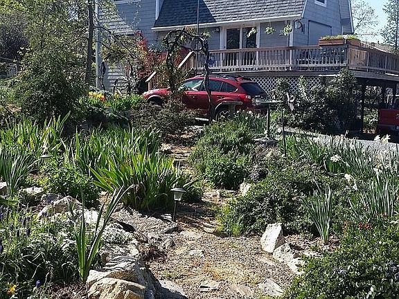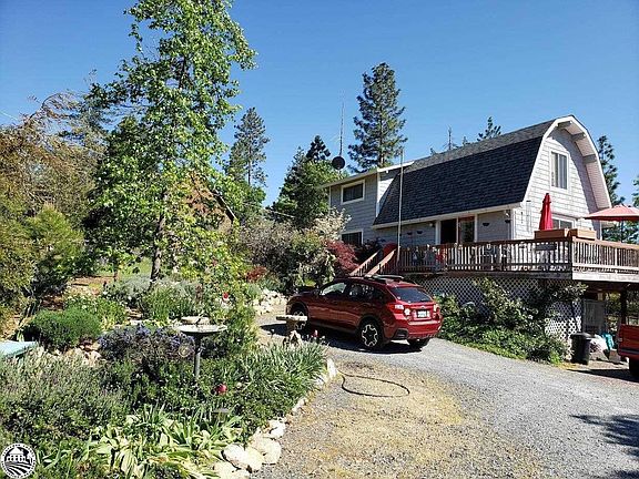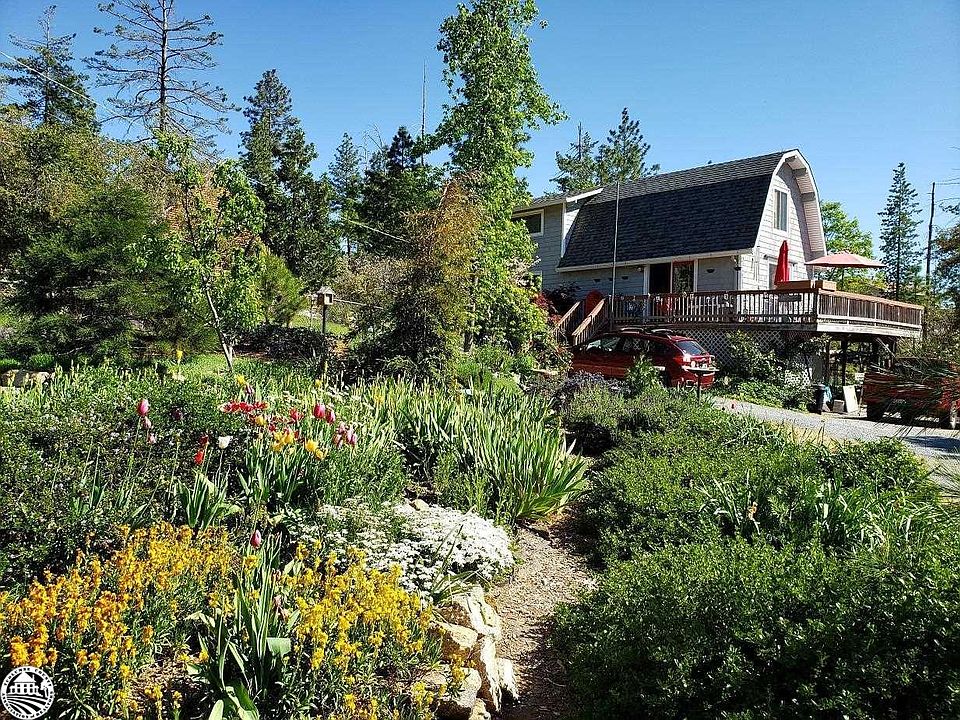 Adorable home with that mountain cabin feel on beautifully landscaped, low maintenance, flat lot of .40 acres and COMPLETELY fenced. 3 bedroom, two bath, 2 car garage, 1146 sq. ft. No home owner dues here, yet still close to town of Groveland. Marvell Market in Groveland is 1.7 miles. Gardens galore, flowers galore, vegetable garden too. Surrounded by nice properties. Views in all directions of trees and hills. Propane heat stove keeps entire home warm in winter and evaporative window cooler keeps it cool in summer. Beamed knotty pined ceilings throughout. Solid composite quartz counters in kitchen, newer cabinets. Many upgrades to home - 1. New double pane vinyl windows all around 2. Vinyl siding 3. Hot water heater 3 years new, 50 gallon 4. Septic leach lines re-engineered and replaced 5. Entry gate is electric solar powered 6. Kitchen remodeled 2012 7. Washer under 5 years old 8. West side of roof replaced 4 years ago Amenities available include Tuolumne county airport, Pine Mt. Lakes - stables, 18 hole Championship Golf Course and Country Club for dining. Flying club with 180 horse power Cessna 172 for pilots or those who want to become pilots. Yosemite National Park is just 26 miles down the road. Stanislaus National Forest is nearby which may become the home to an international quality mountain biking trail complex. Hiking, biking, fishing, plus all water sports at nearby Lake Don Pedro's Moccasin marina. Above the fog and below the snow describes our area. At the 3000 foot level of the Sierra Nevada foothills we enjoy a climate that is just about ideal. Winter temperatures are on a par with San Francisco and summer days are warm for the enjoyment of the outdoors and water sports, but at night the wind blows down from the mountains providing Mother Nature's air conditioning. Sleep with the windows open at night in the quiet solitude of a sparsely populated area. No Street lights to mar your view of the heavens, and yes, there really is a Milky Way. Activities and recreation abound in our area. Neighbors know who you are and say HI!