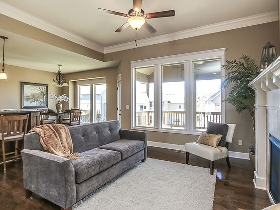 Coventry Reverse 1-1/2 Story. Large kitchen w/granite countertops center island breakfast bar that seats 4 walk-in pantry-drop zone & distressed oak floors in great rm & entry. 17x12 covered deck master bath w/walkin tiled shower whirlpool tub & tile floors. 23x15 family rm w/wet bar cabinets & wine rack. 4th bedroom has walkin closet. 17x12 patio.