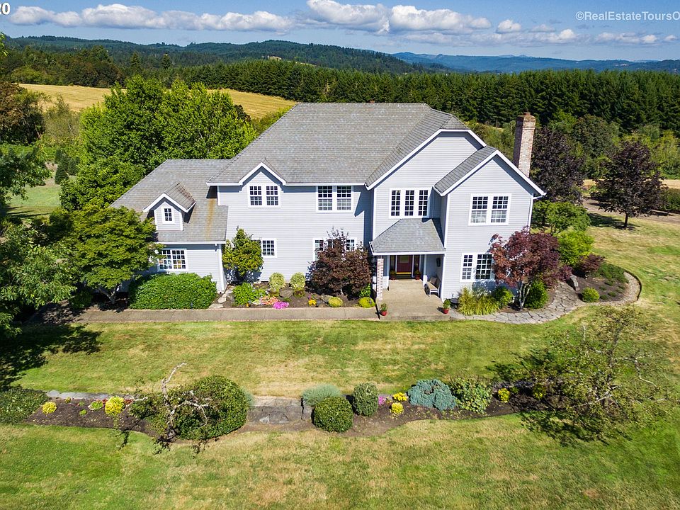 A stunning farm in the perfect rural setting. Enter the property up a tree lined driveway to home sitting on a knoll over looking the valley. On a clear day you even see Mt Hood. Over 3100 sq ft 4bd, 3bth, w/ unique Merbau Hardwood flrs, inviting kitchen w/ granite tile. Peaceful patio w/ hottub. 1500 sq ft barn/shop set up as Home Office, potential to be a guest rental/ADU, or great for wine tasting. 60+ acres rented, approx 40ac deemed suitable for vineyard. Xmas trees, 1200 lavender plants
